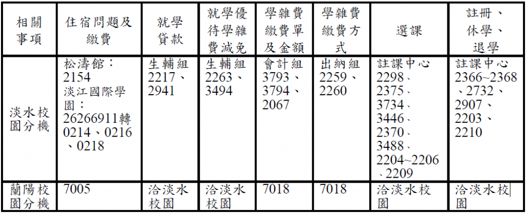 八、下列相關事項請洽各承辦單位:(代表號02-2621-5656)