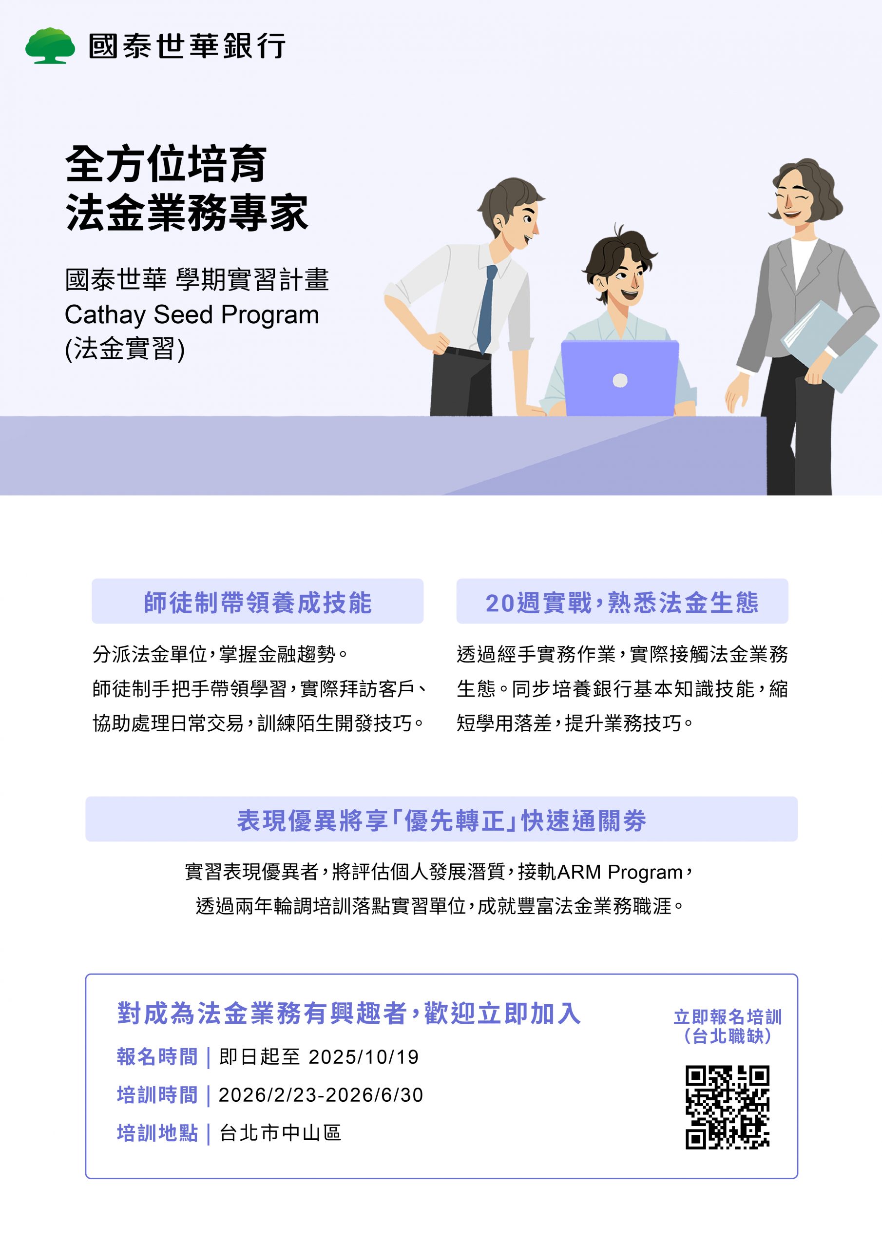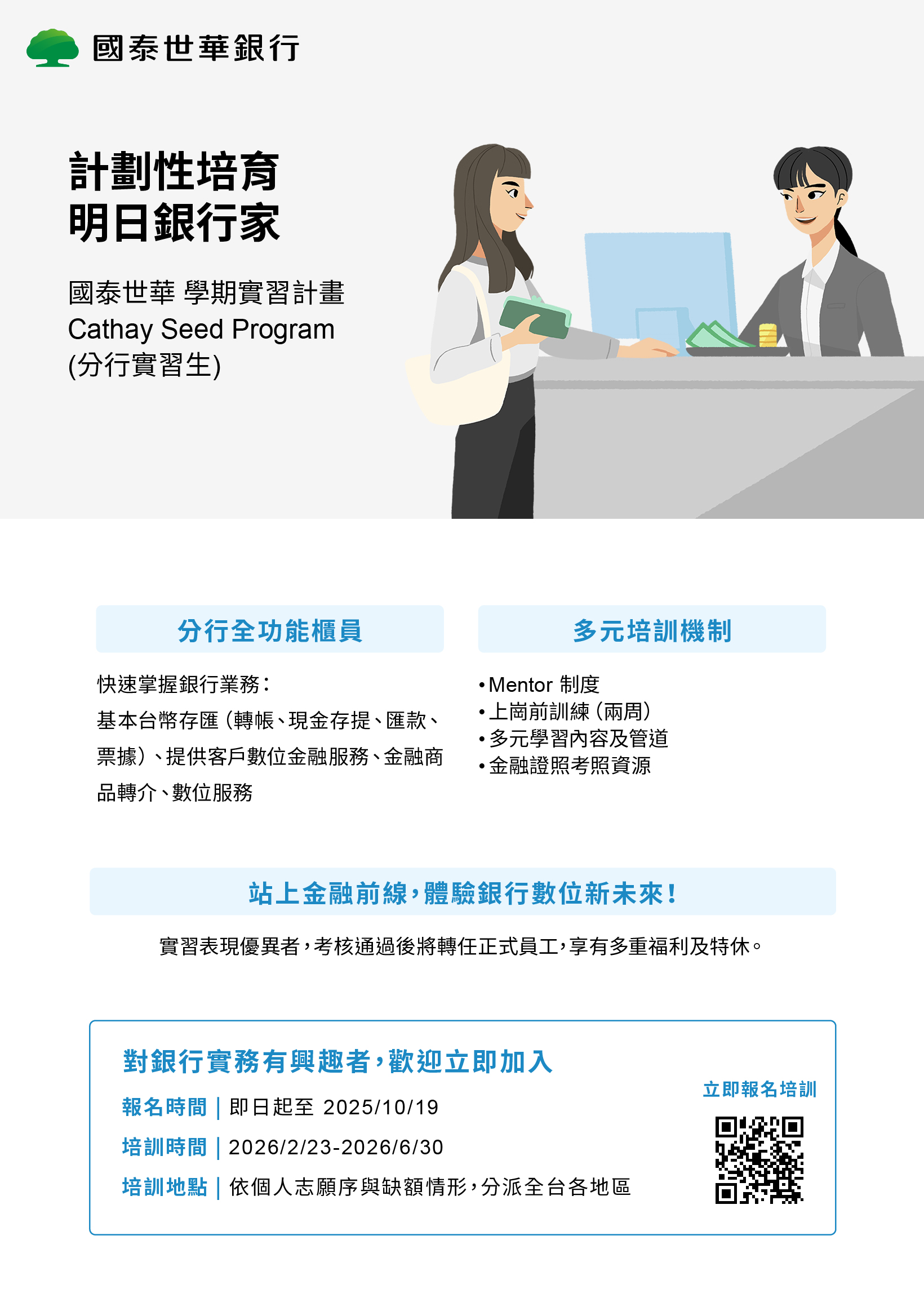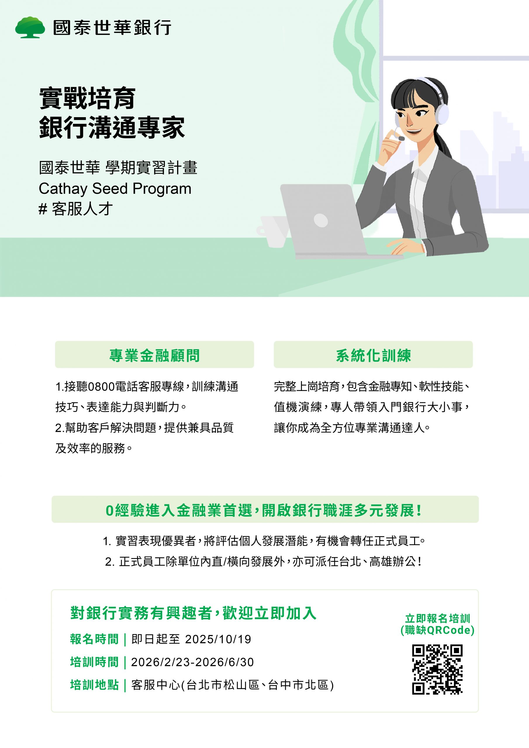 **國泰世華銀行 為經濟系校外實習課程合作之實習職缺,