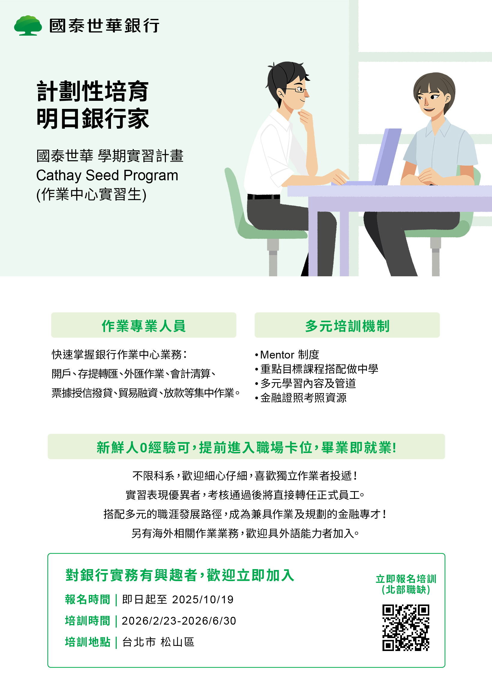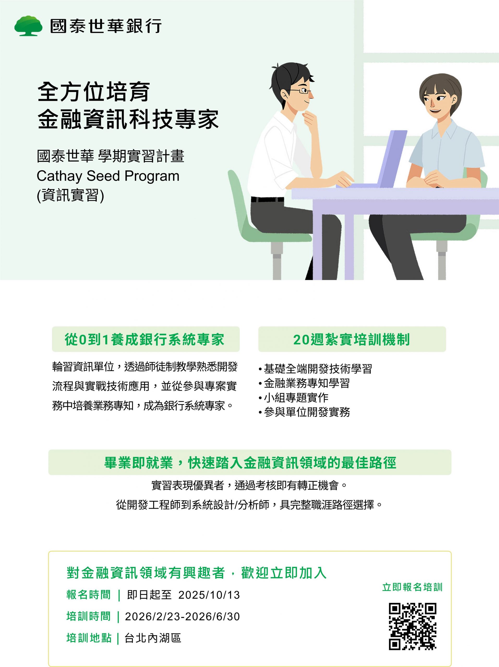 **國泰世華銀行 為經濟系校外實習課程合作之實習職缺,