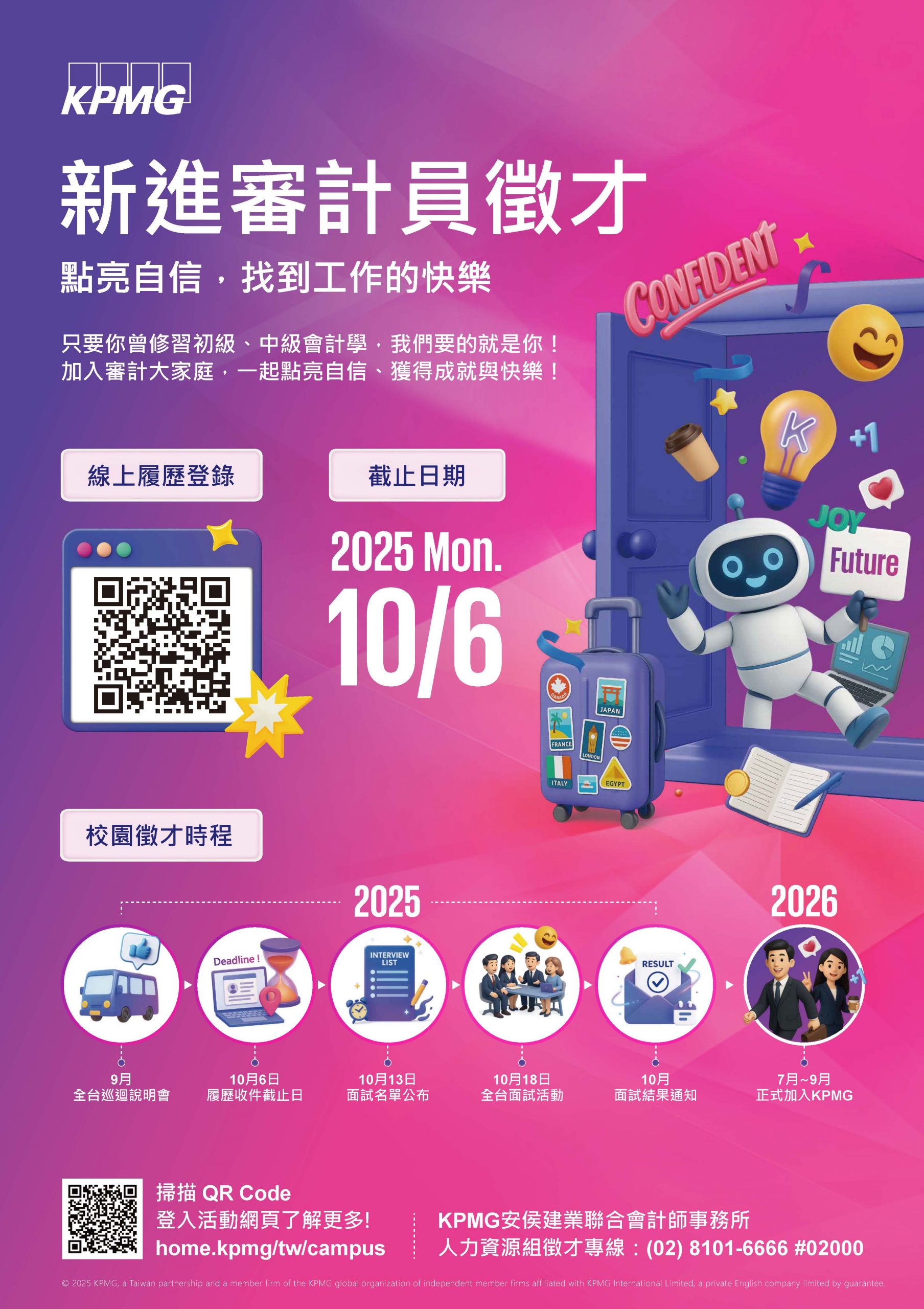 以上感謝您的協助,如有任何問題歡迎隨時與KPMG人力資源組陳小姐聯絡,02-81016666分機16988